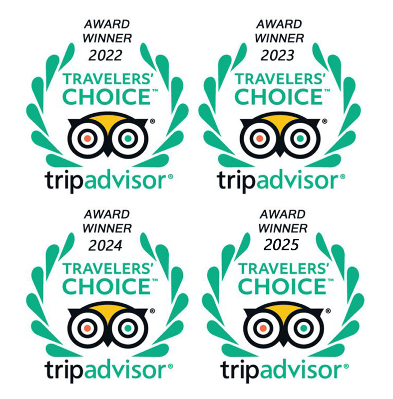 We are proud to have won the Tripadvisor Travelers' Choice Award for 2022, 2023, and 2024, a testament to our commitment to providing exceptional travel experiences.